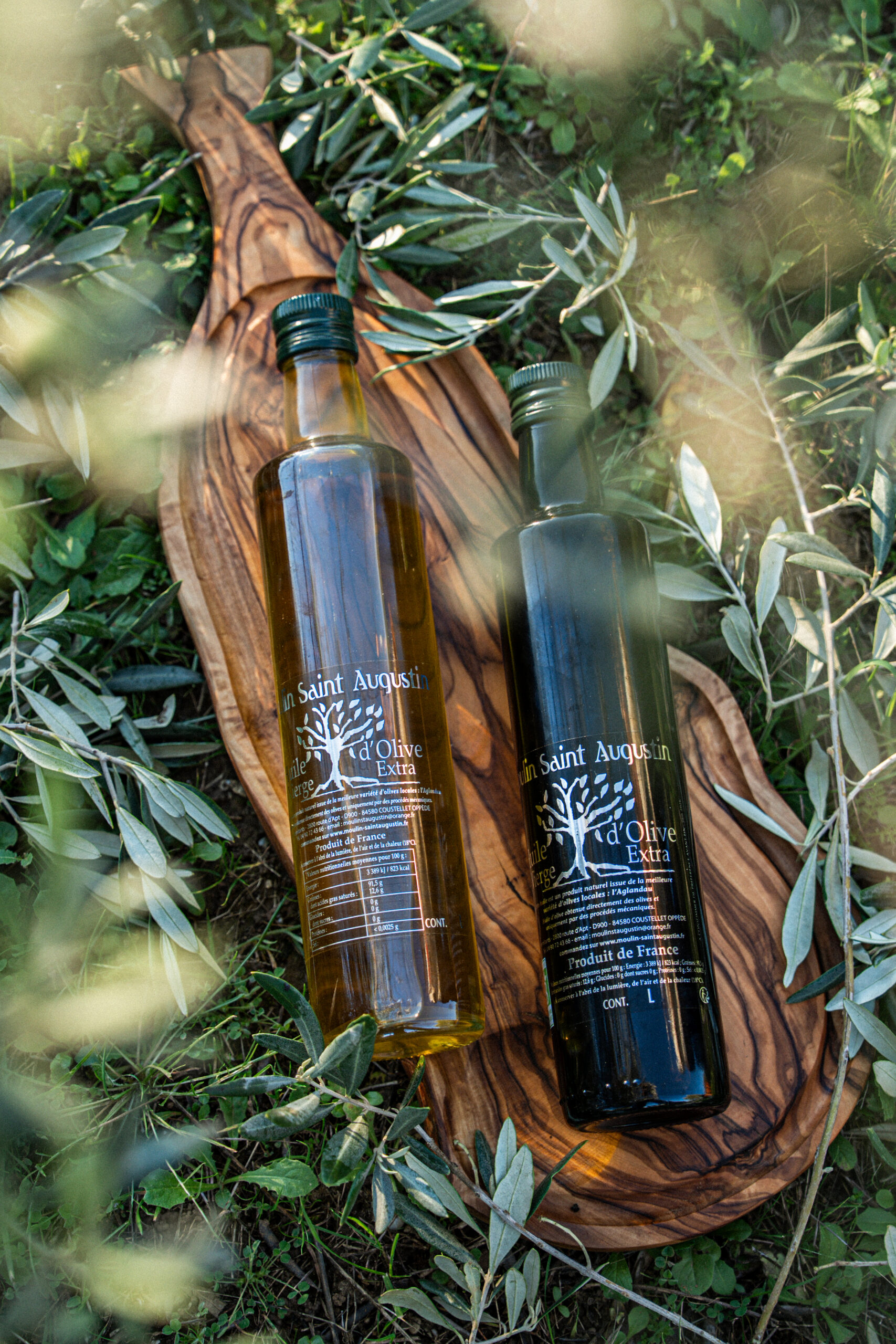 Au Domaine du Moulin Saint Augustin, nous avons choisi de produire des huiles d’olive en monovariétale Aglandau afin de révéler toute la richesse de notre terroir. À l’instar du vin, l’appréciation d’une huile fait intervenir la vue, l’odorat et le goût. Chaque huile possède en effet une couleur, une densité, des arômes, une fluidité, des saveurs et une longueur en bouche particulières, autant d’éléments qui témoignent de l’authenticité de notre production.